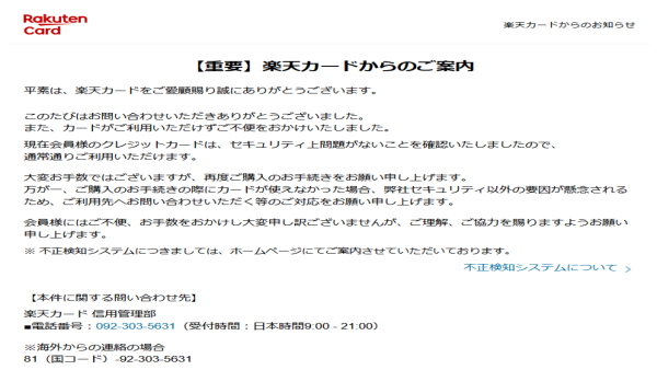 その後、楽天クレジットカードを追加しようとしたが、エラーが表示。カード会社に確認するようにメッセージが表示されていたので、楽天カードコンタクトセンターに問合せて対応してもらい、楽天カードも登録できました。